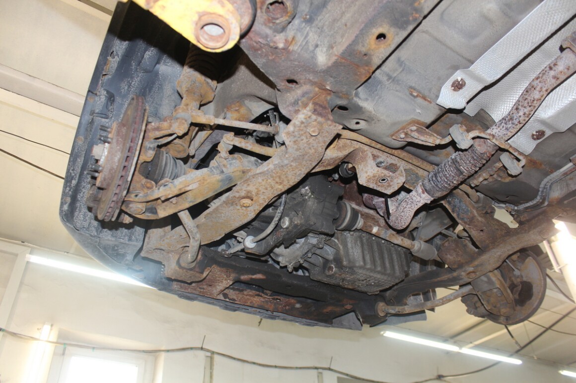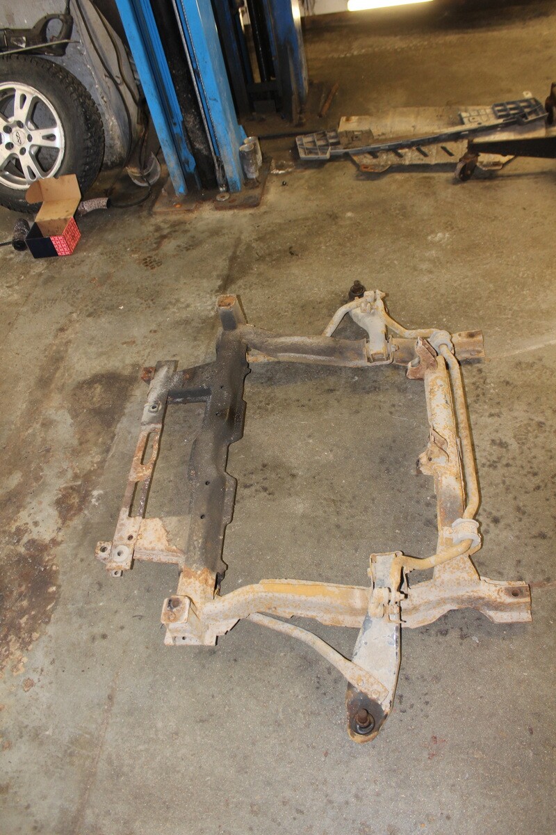 Подрамник снят, откручиваем КПП. По ходу разборки выяснилось, что нужно заменить изношенные шаровые опоры.. Согласуем, закажем.