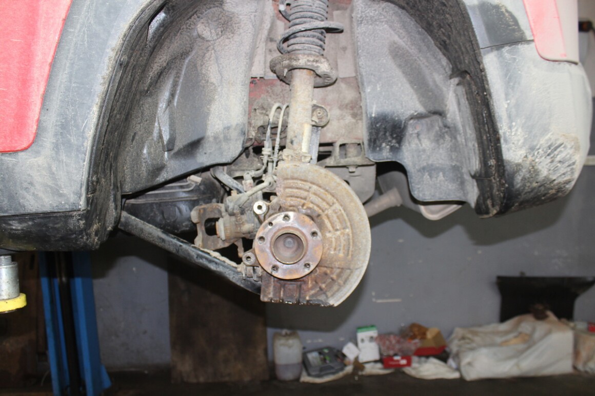 Три дня назад хозяин уже заезжал к нам на диагностику, мы проверили ходовую и написали список рекомендаций по замене, самое основное из которых было заменить задний левый ступичный подшипник. Хозяин попросил нас подобрать и заказать деталь для ремонта; деталь пришла и вот Джип уже на подъёмнике.