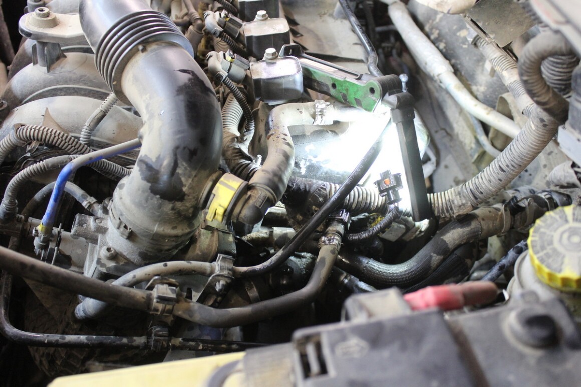 Провели диагностику, пришли к выводу о необходимости замены термостата. Хозяин согласен, заказываем термостат, через три дня термостат и машина у нас. Приступаем к разборке. Термостат расположен весьма неудобно.