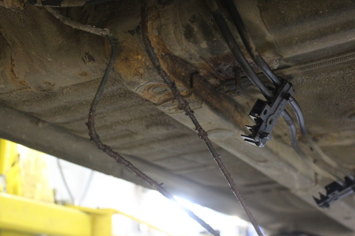 Поднимаем на подъёмнике, дефектуем тормозную систему. Видим корродированные и потёкшие трубки задних тормозов.