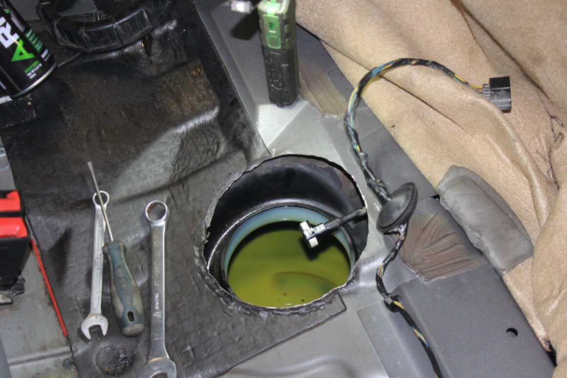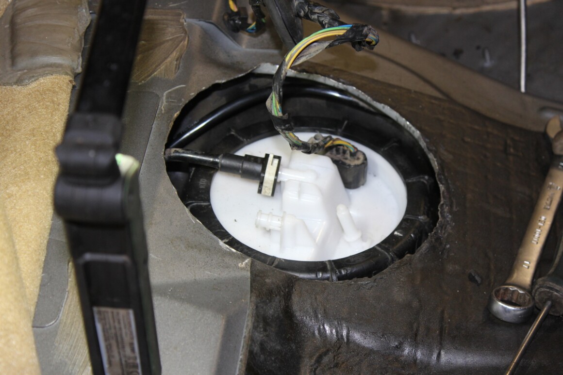 Вариант один — менять бензонасос. Единственная проблема — насос находится в бензобаке и доступ к замене насоса только при снятом баке. Есть ещё один вариант — вскрыть полик под задним сиденьем, тогда бензонасос достанем через салон. Но такие варианты мы реализуем только по решению владельца. В данном случае владелец поддерживает второй вариант, поэтому приступаем к «операции».