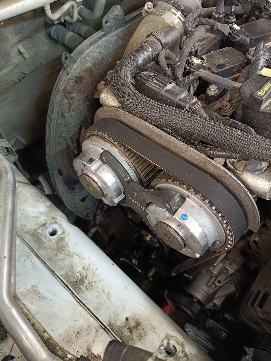 Три вала зафиксированы. Зачищаем посадочные места, устанавливаем новый насос ОЖ, новый комплект ремня ГРМ.