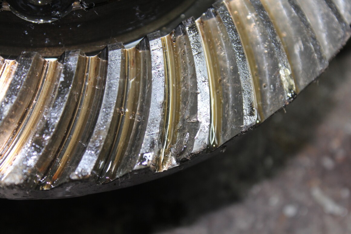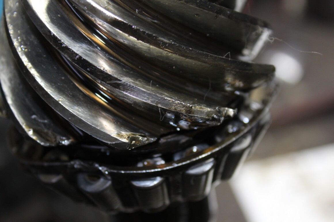 Достаём и осматриваем детали редуктора. Действительно, развалился дифференциал. Также под замену подшипники и главная пара, пострадали зубья.