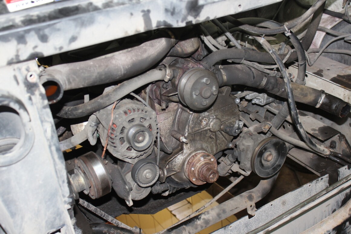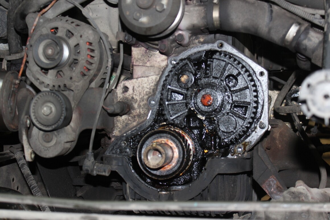 Чтобы добраться к шестерне, надо снять бампер, радиатор, переднюю крышку двигателя.