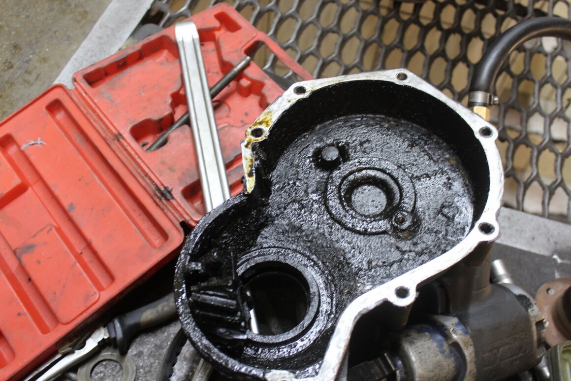 Заряжаем АКБ, вращаем стартером, вращение очень лёгкое. Открываем маслозаливную горловину, опять вращаем, не видим движения газораспределительного механизма. Подозрение на развалившуюся шестерню привода ГРМ. Обсуждаем с владельцем план и стоимость ремонта, заталкиваем автомобиль в бокс и приступаем.