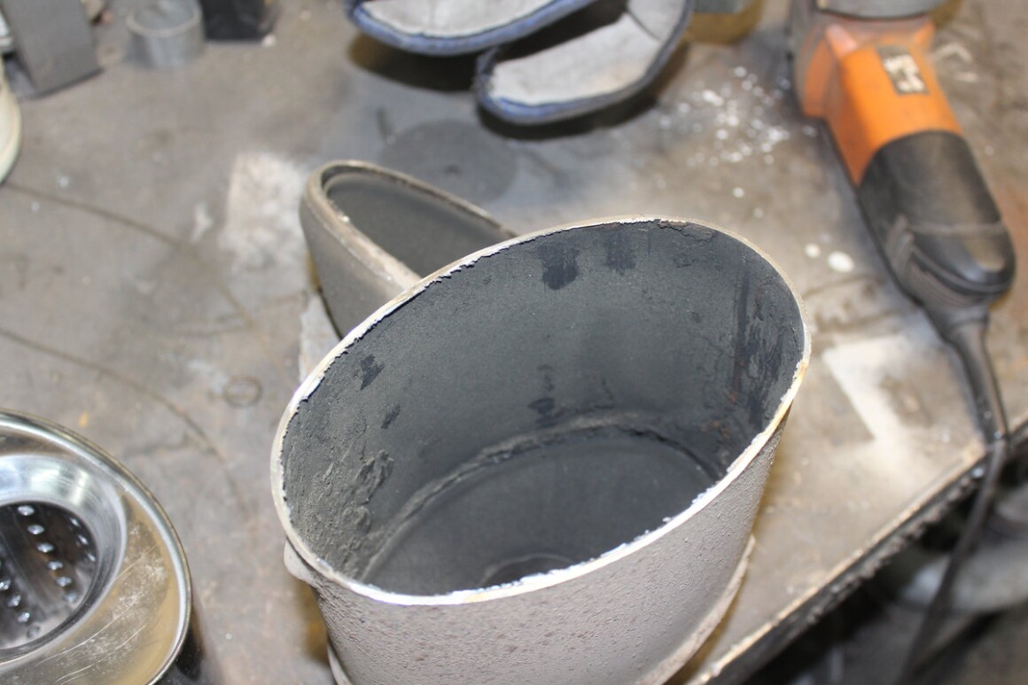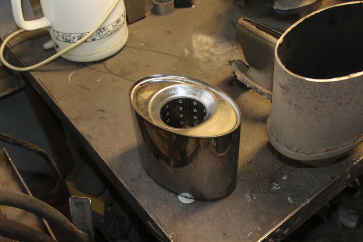 Устанавливаем новый овальный пламегаситель, обвариваем.
