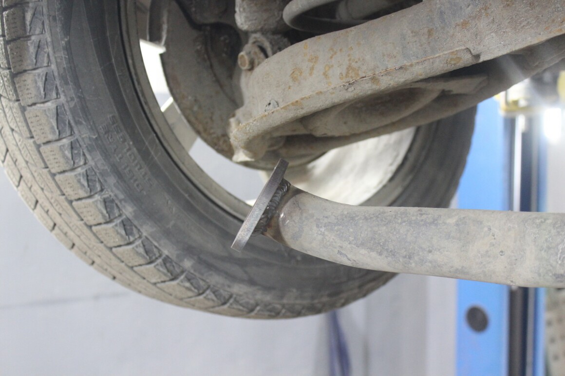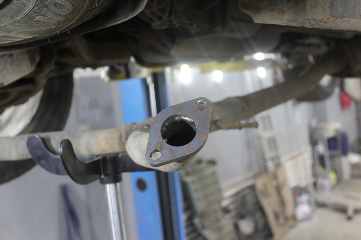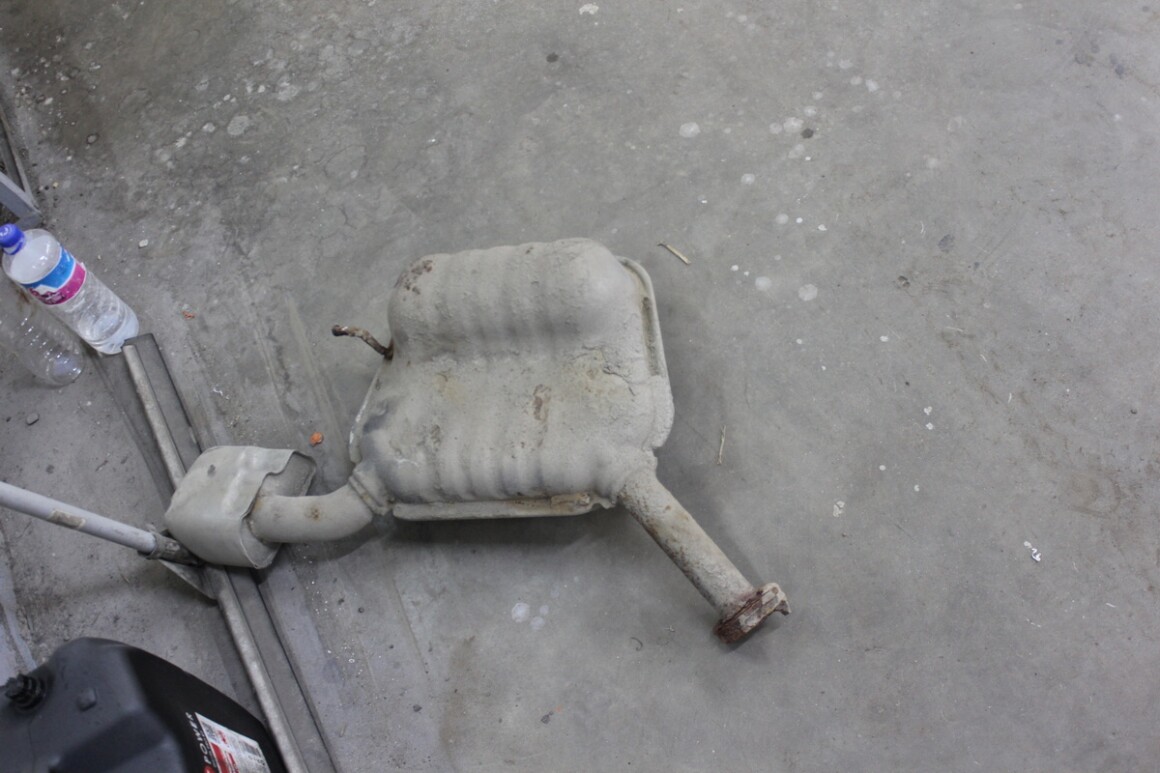 И вот через две недели глушители и машина у нас, приступаем к ремонту. Снимаем старый левый глушитель.