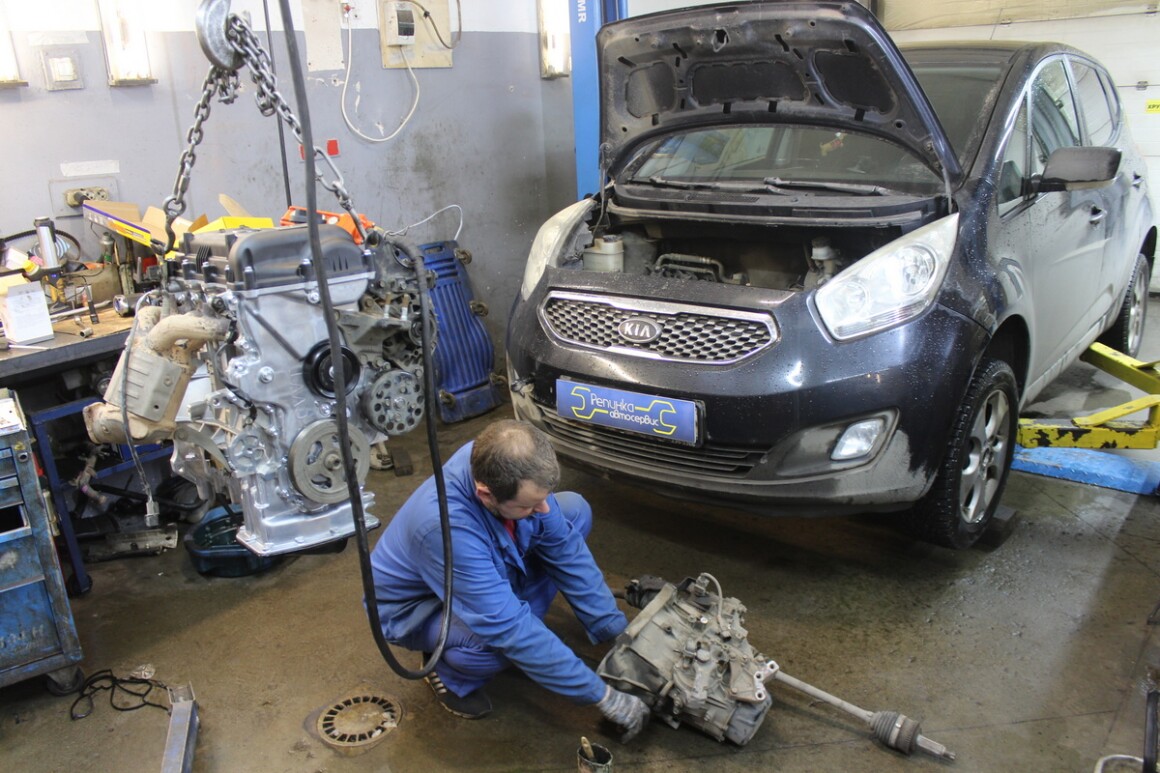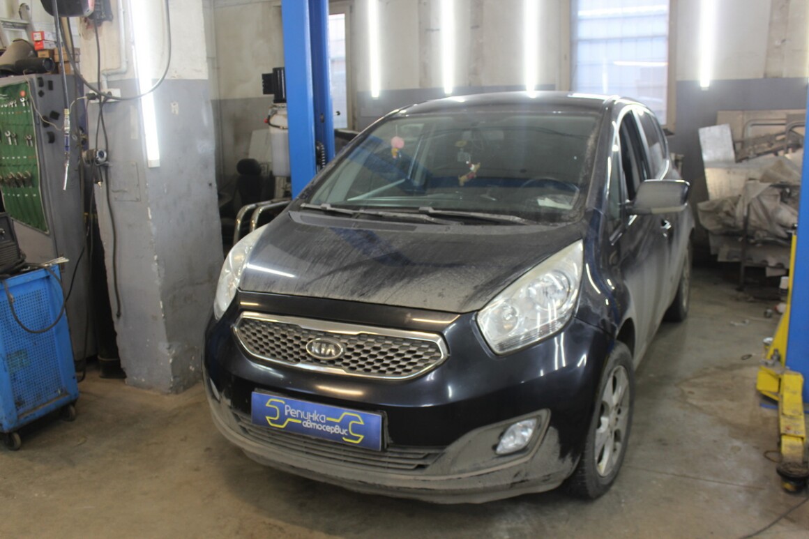 На эвакуаторе привезли Киа Венга. Жалоба владельца — не проворачивается коленвал. Машину разгрузили, закатываем в бокс, будем разбираться.