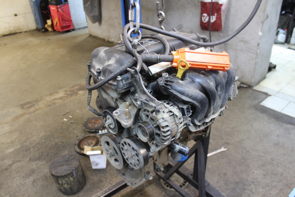 Стартер только щёлкает, воротком двигатель не проворачивается. Чтобы исключить заклинивание двигателя из-за возможной поломки стартера, снимаем последний, пробуем ещё раз раскачать коленвал. Ни в какую. Что ж, обсуждаем с владельцем дальнейшие действия и приступаем к снятию двигателя.