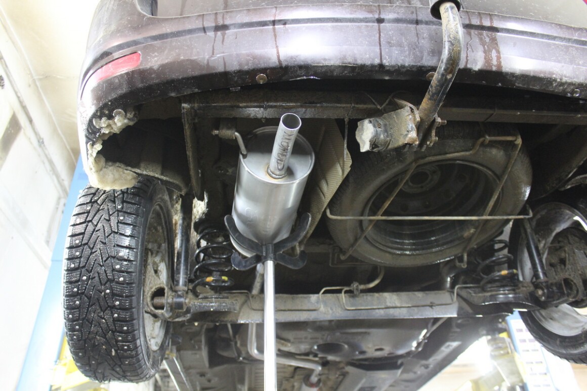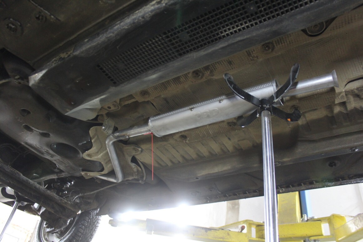 Проверяем зазоры до элементов кузова и подвески, запускаем и проверяем герметичность выхлопа.