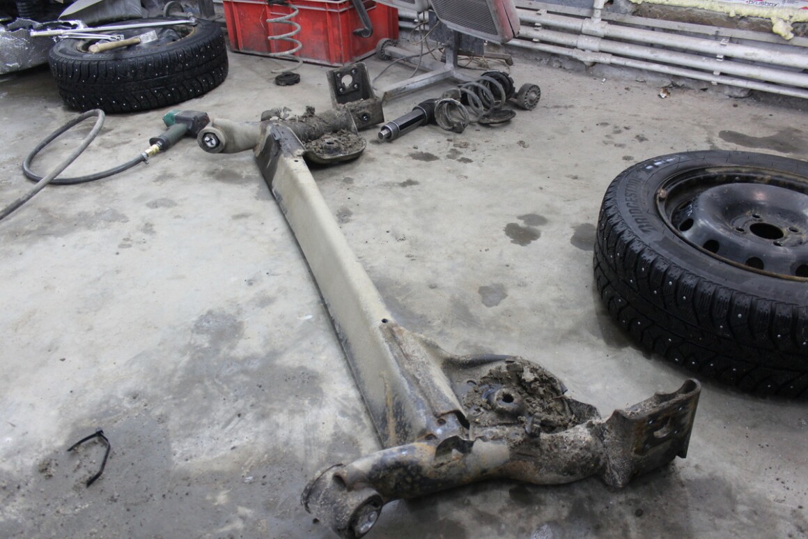 Требуется замена задней балки, в старой (хотя пробег небольшой, 70 т км) лопнул торсион. Балка есть, сайлентблоки есть, приступаем к замене.