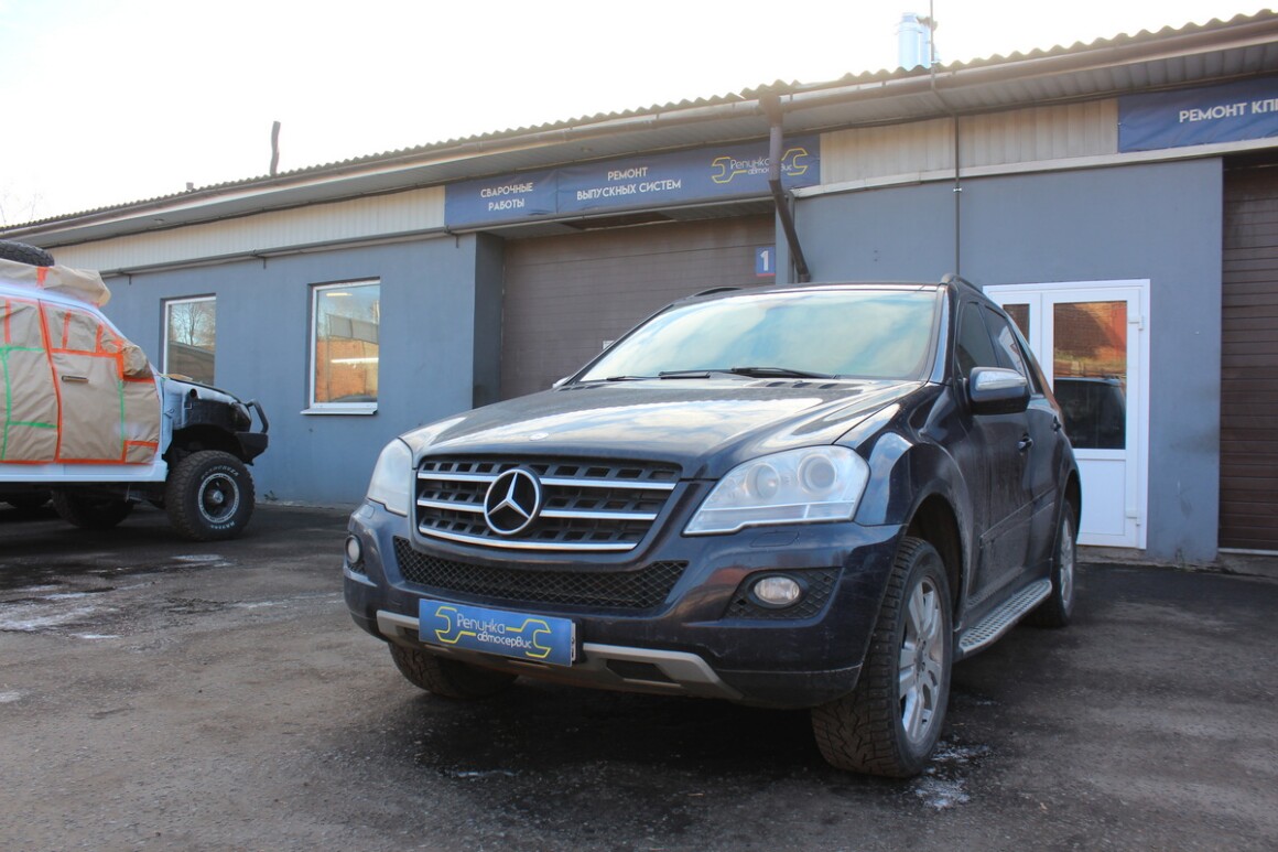 К нам в Автосервис Репинка обратился владелец ML W164 с просьбой отремонтировать выхлопную, очень громко работает.