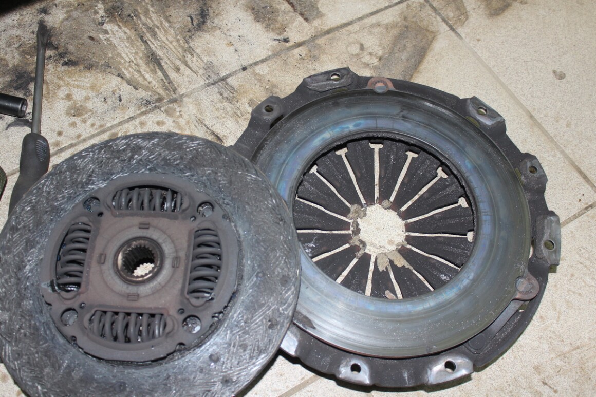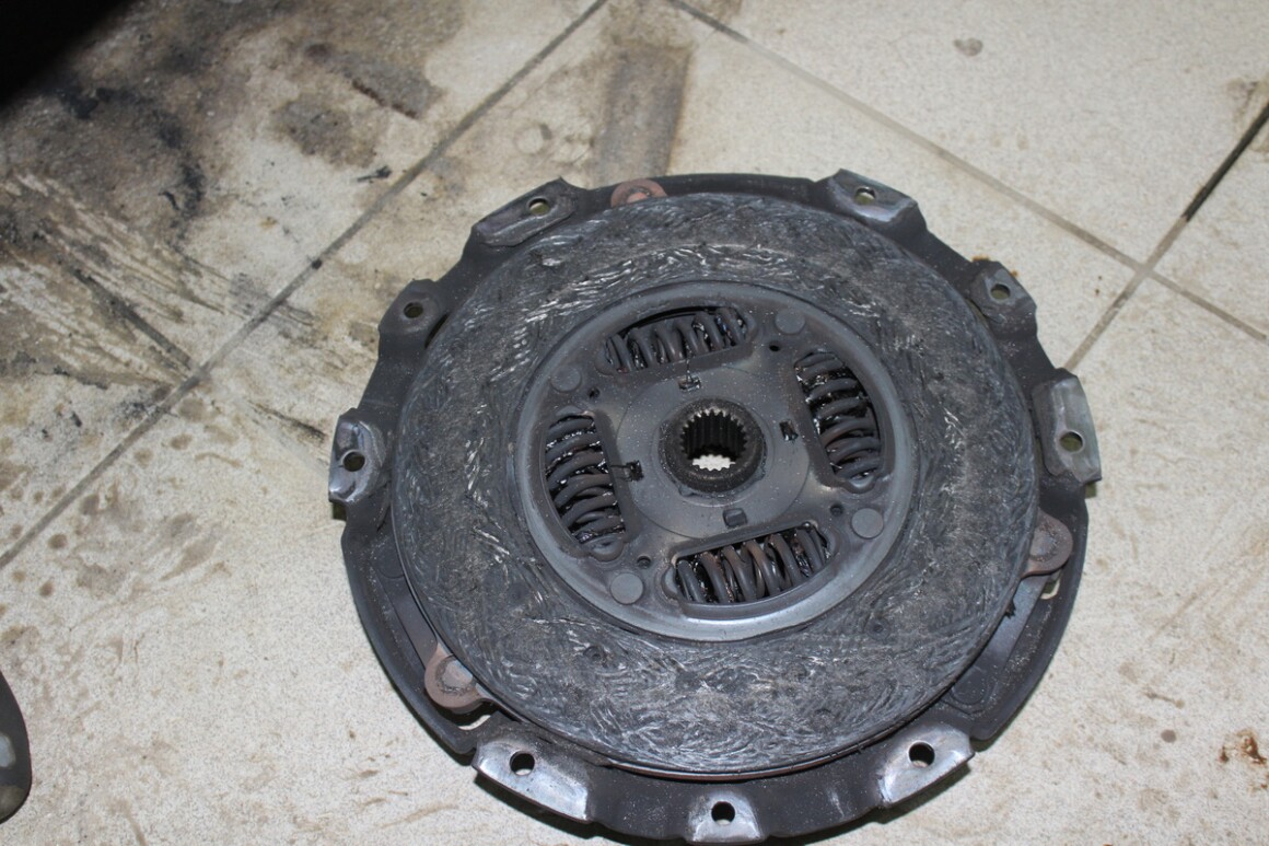Сцепление синего цвета, внутри всё в продуктах износа.