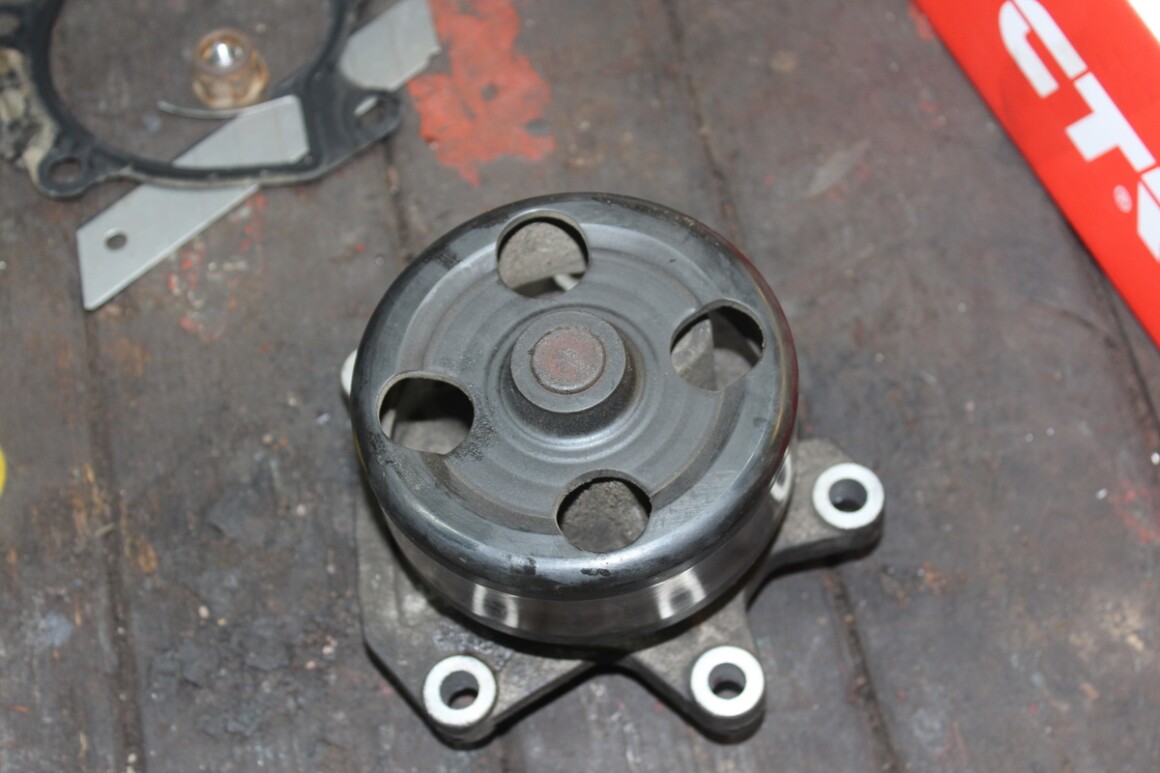 Хозяин жалуется на повышенный шум при работе мотора. Послушали, запустили также при снятом ремне, пришли к выводу, что шумит насос охлаждающей жидкости. Хозяин настроен решительно, просит сразу отремонтировать. Хорошо, сразу приступаем к разборке, одновременно заказываем доставку помпы.