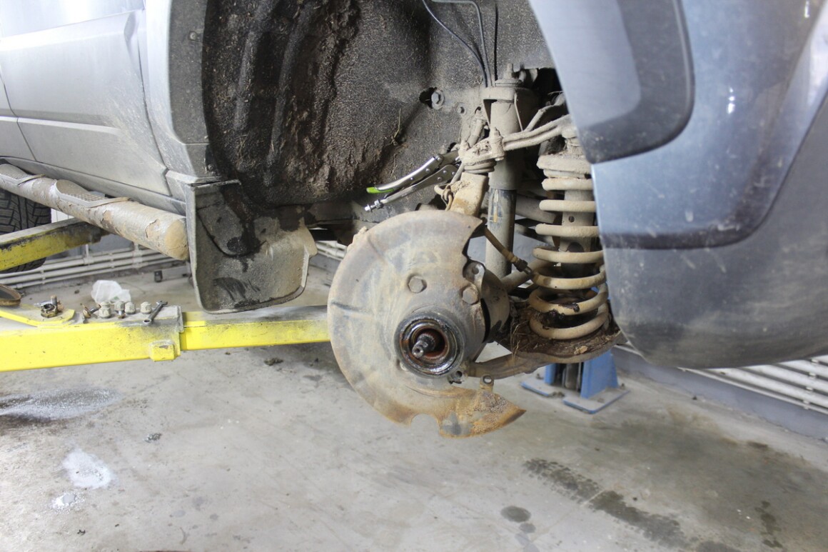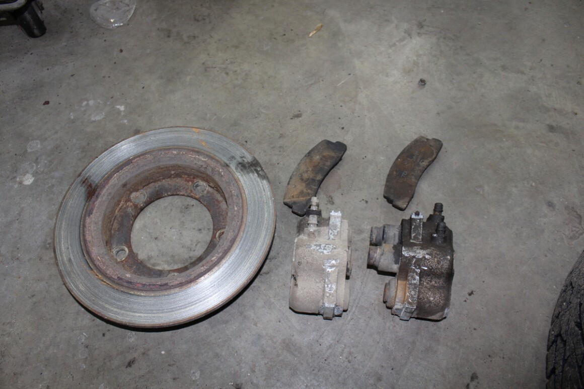 Снимаем колёса, видим предельный износ колодок, тормозных дисков, заклинившие тормозные цилиндры.