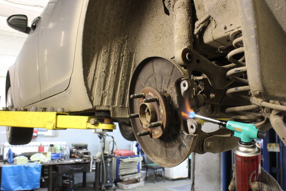 Но всё оказалось непросто, сказывается возраст автомобиля, воздействие реагентов. Кулак алюминиевый, ступица стальная, посадка плотная. Выпрессовать получается только с нагревом.