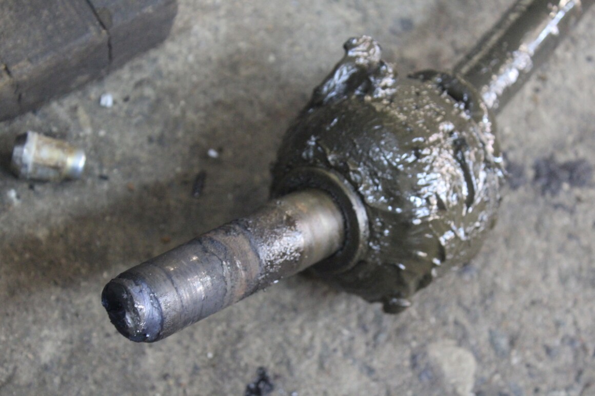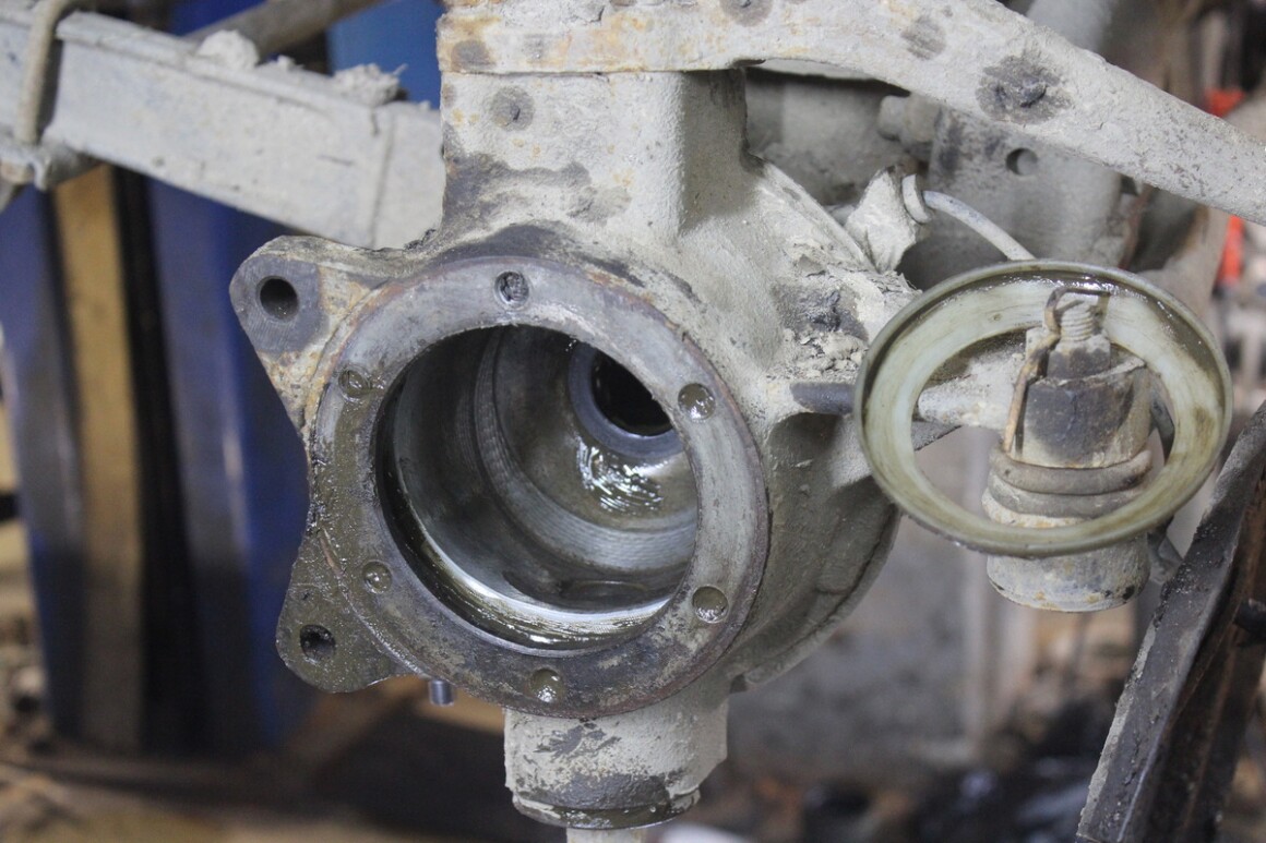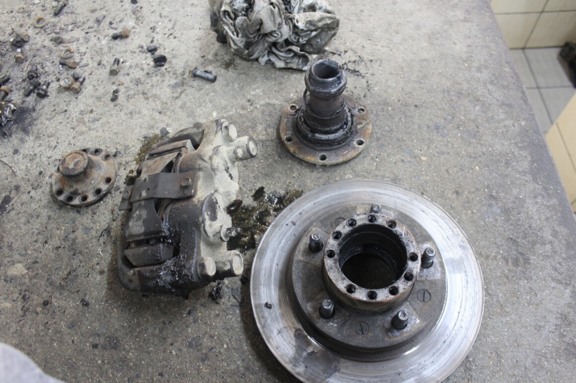 Под замену цапфа, ступица в сборе с подшипниками, тормозные диски, колодки. Также придётся менять привод в сборе.