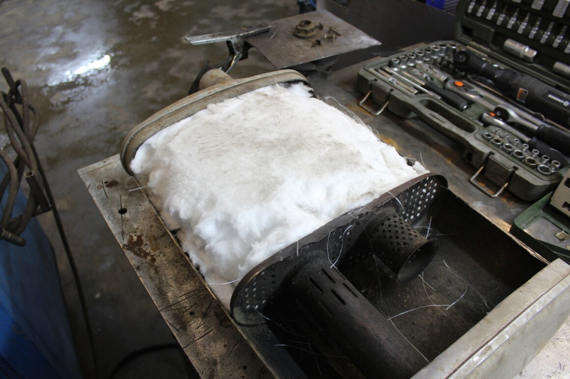Инженеры Рено явно сэкономили на внутренностях глушителя. Мы предложили внести внутренние улучшения, хозяин согласен, действуем. Добавляем перфорированные трубы, оборачиваем их шумоизоляционной термостойкой ватой, закрываем полость нержавеющим листом.