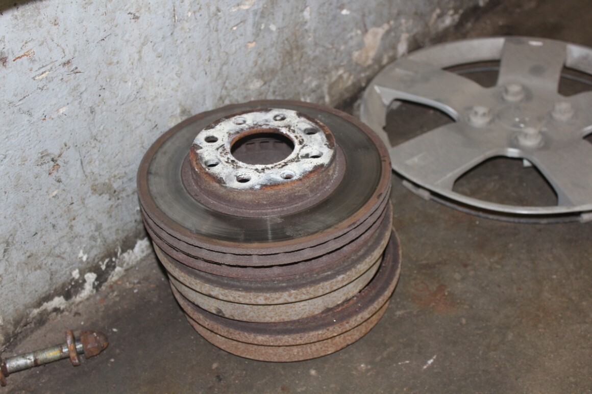 Устанавливаем новые комплекты дисков и колодок на переднюю ось.