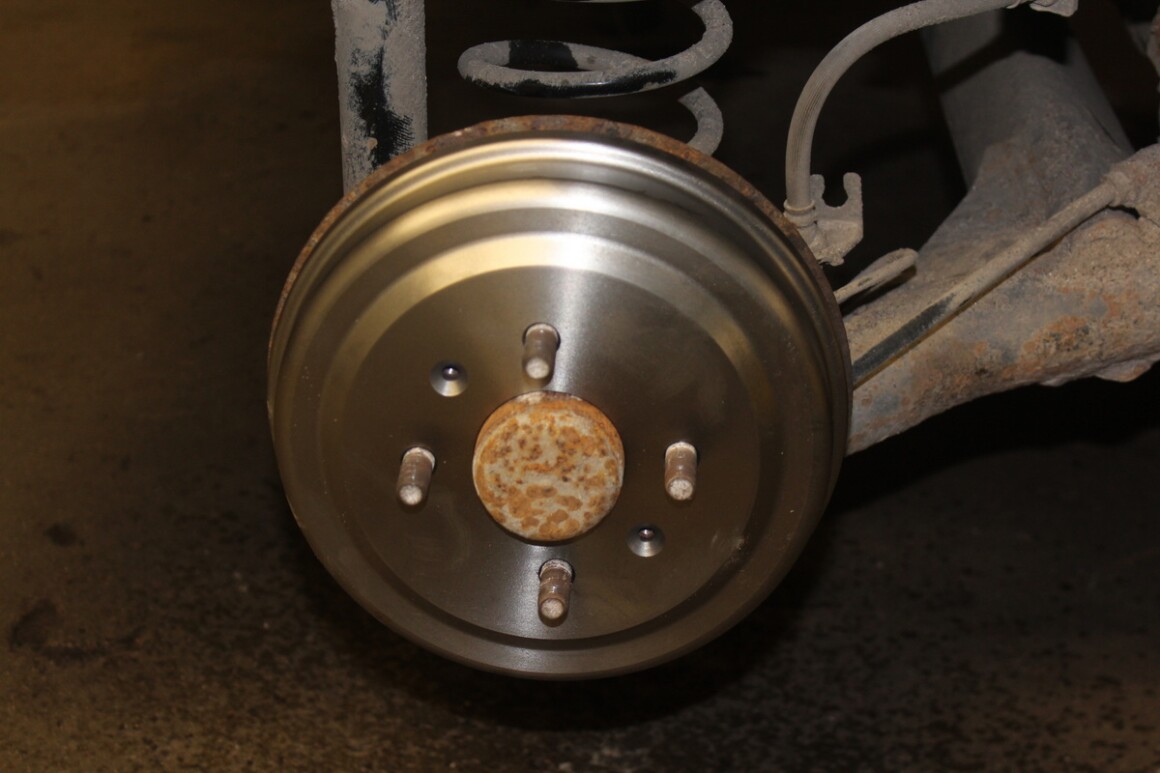 Далее устанавливаем новые тормозные детали на заднюю ось. Попутно зачищаем, смазываем, регулируем.