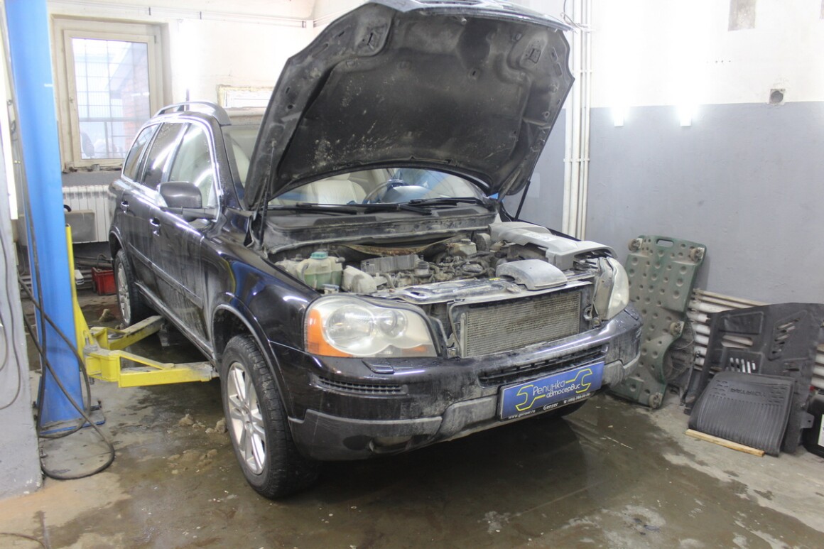 Через Авито на сегодня на утро записался владелец Вольво ХС-90 с мотором 3,2 на ремонт выхлопа. Пока неизвестно, какая неисправность, поднимем — посмотрим. Машина заезжает в бокс, поднимаем.