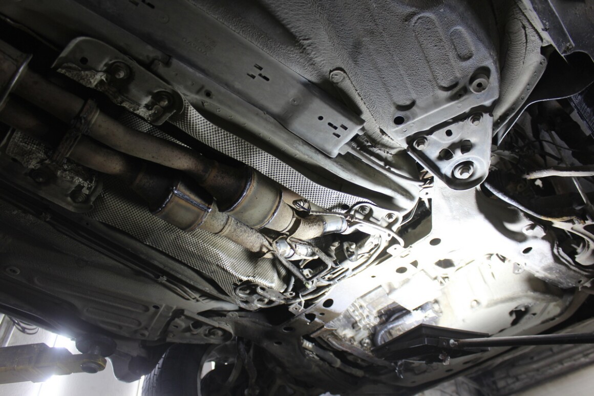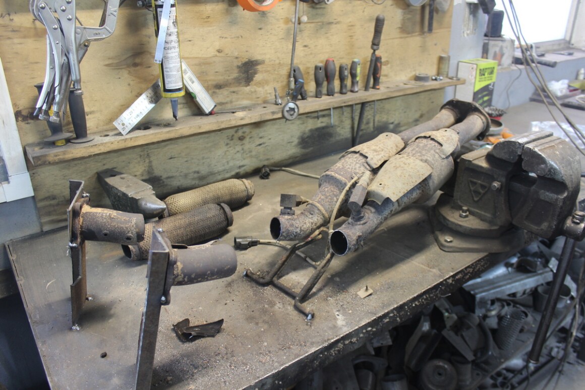 Прохудились гофры. Нужно снимать приёмные трубы в сборе со вторыми катализаторами и менять гофры. Обсудили с хозяином, получили одобрение, приступаем.